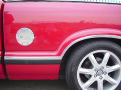 Rojo diablo, un capot limpio una mascara cromada mas un Air Dam con inserto de aluminio y neblineros Xenon nos indica que esto es un trabajo serio..