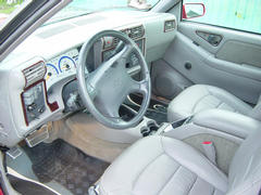 Butacas de cuero gris GM, con consola central y comandos electricos..